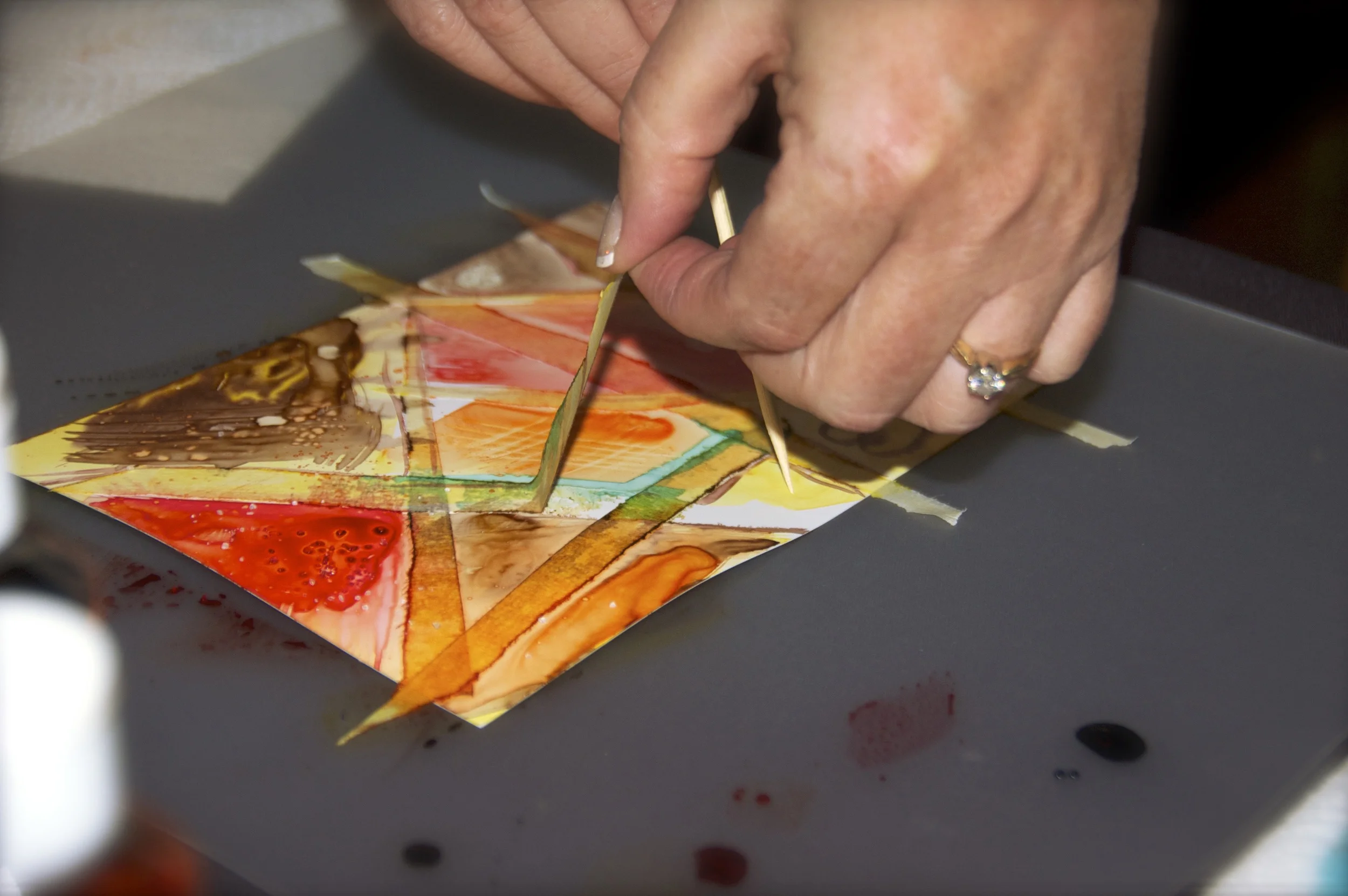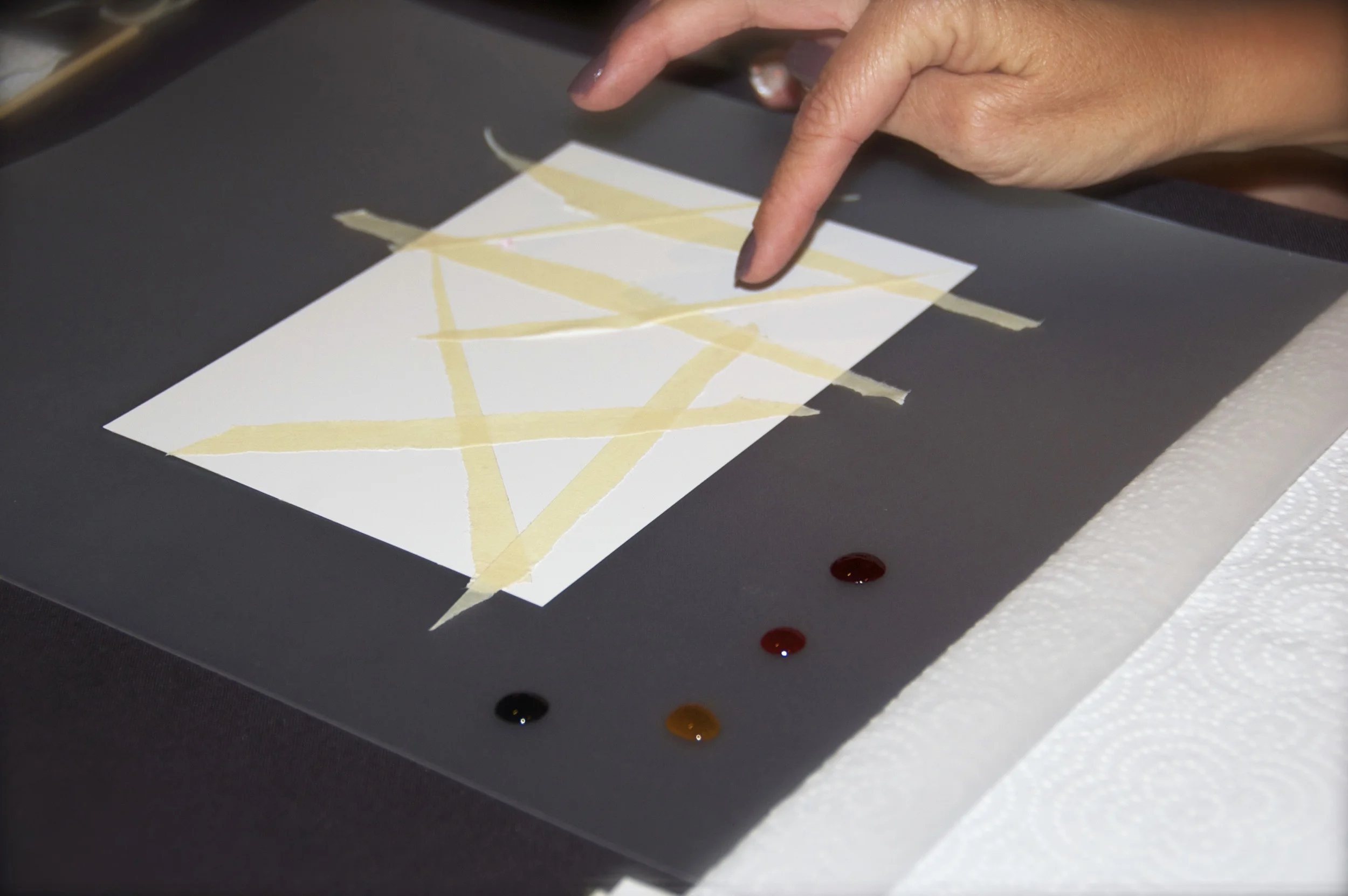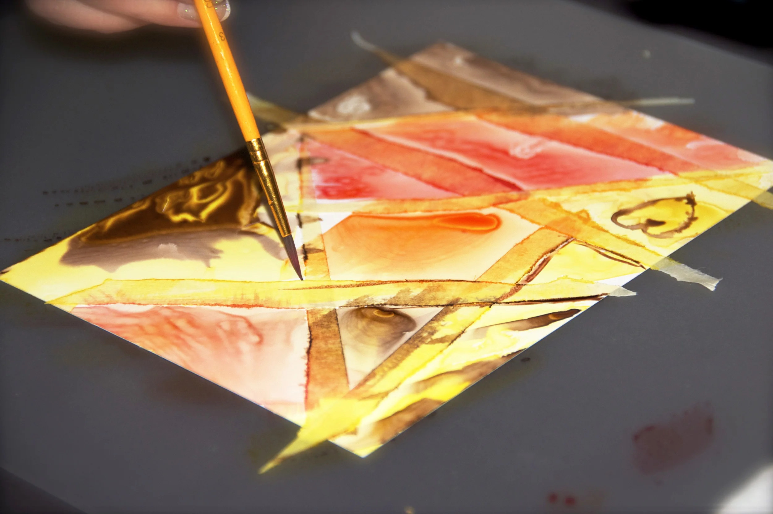 Adding structure to the the abstract painting with masking tape—later we will remove the tape to reveal negative space.