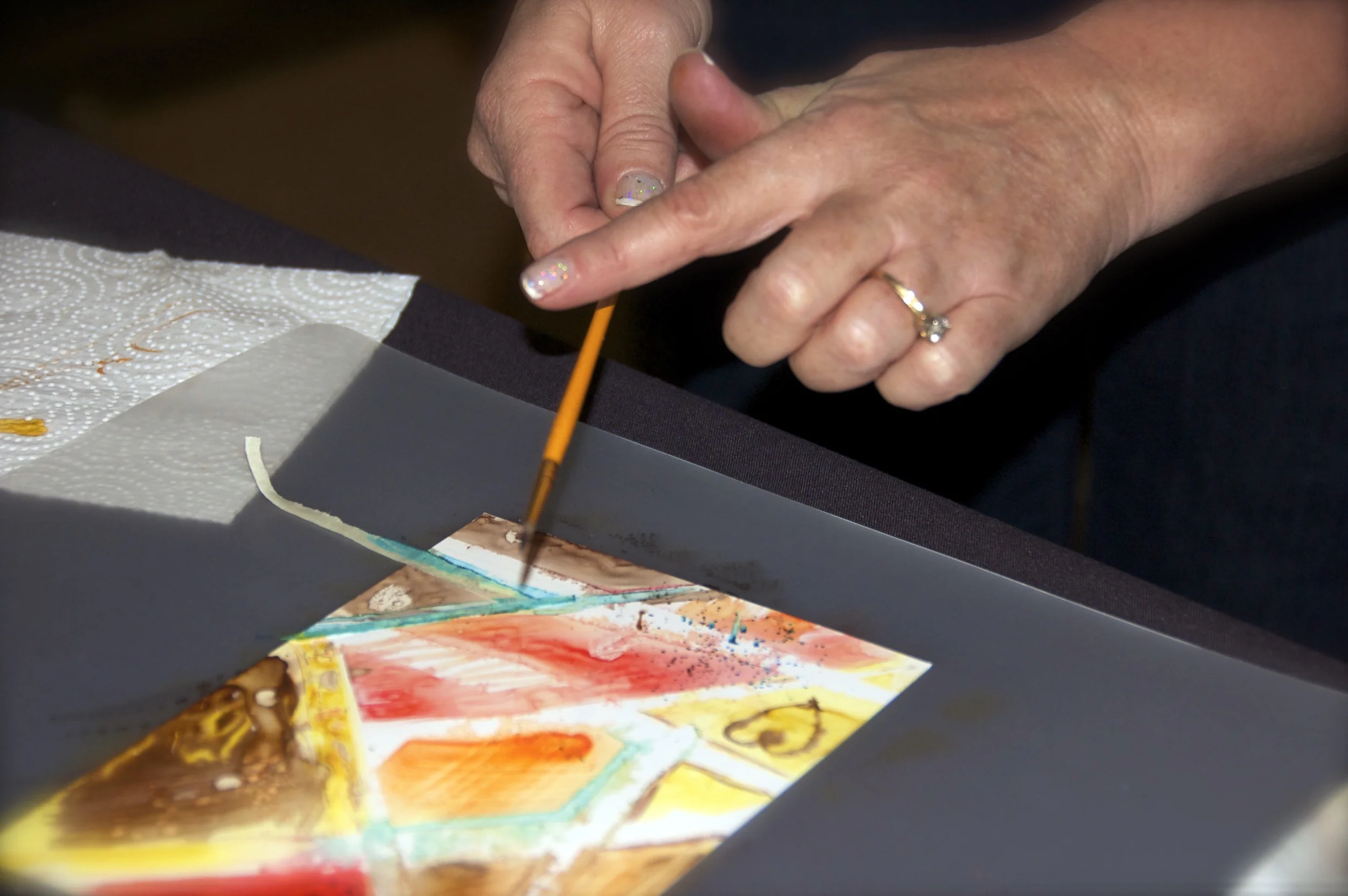 A whole class full of wonderfully individual abstract watercolor paintings.